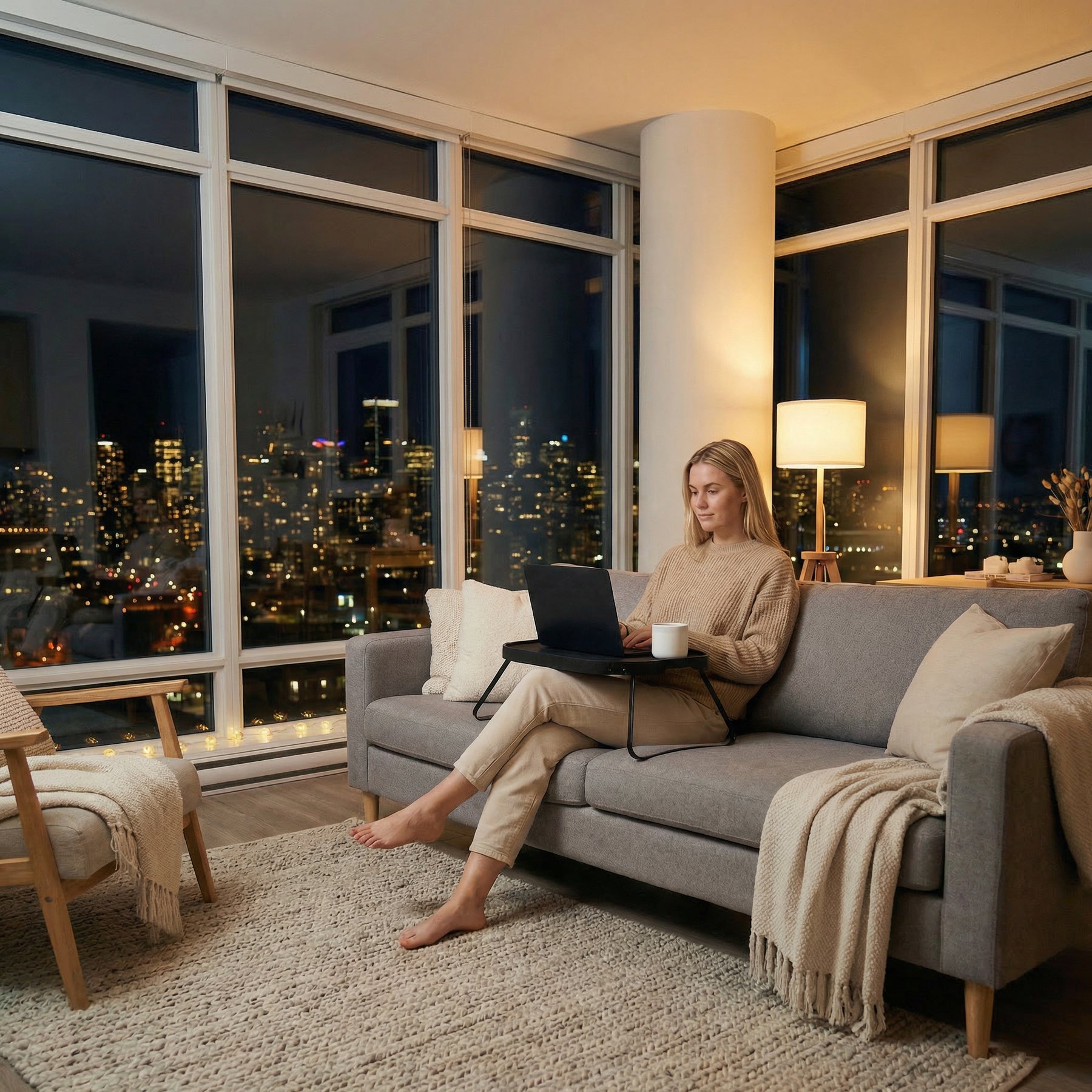 Lyxigt men ändå praktiskt, vår CurveLine™ sängbricka förenar stil och komfort i ett elegant stycke. Den mjukt böjda fack i Naturliga trämönster och en mattsvart finish med en ådring och halkfri yta är perfekt när du behöver ett litet portabelt bord. Oavsett om du njuter av morgonkaffet, middagen i sängen eller arbetar hemifrån, ger de fällbara benen en stabil och bekväm uppställning. Med sin raffinerade skandinaviska design är detta sängbord en smart lösning för både arbete och avkoppling.